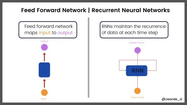 循环神经网络是一类旨在处理序列的神经网络。与多层感知机 (MLP) 等前馈网络不同,RNN 有一个内部反馈回路,负责记住每个时间步的信息状态。