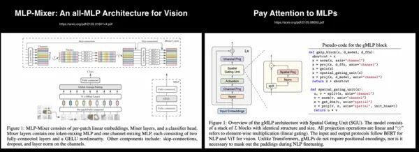 在 2021 年 7 月,两篇基于感知机的论文被发表。一个是 [MLP-Mixer: An all-MLP Architecture for Vision],另一个是 [Pay Attention to MLPs(gMLP)].