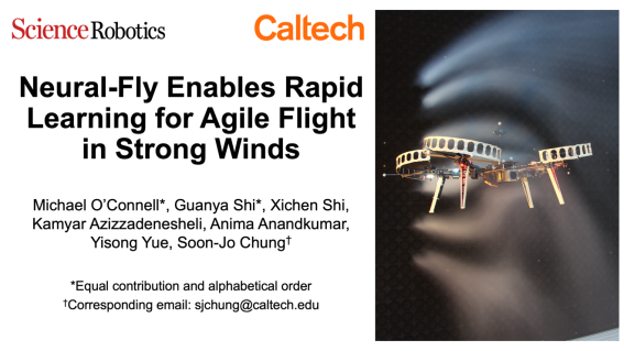 相关论文以《Neural-Fly 能够在强风中快速学习敏捷飞行》(Neural-Fly enables rapid learning for agile flight in strong winds)为题,发表在 Science Robotics 上[1]。石冠亚担任共同第一作者(首字母顺序),加州理工学院工程与应用科学系教授Soon-Jo Chung 担任通讯作者。