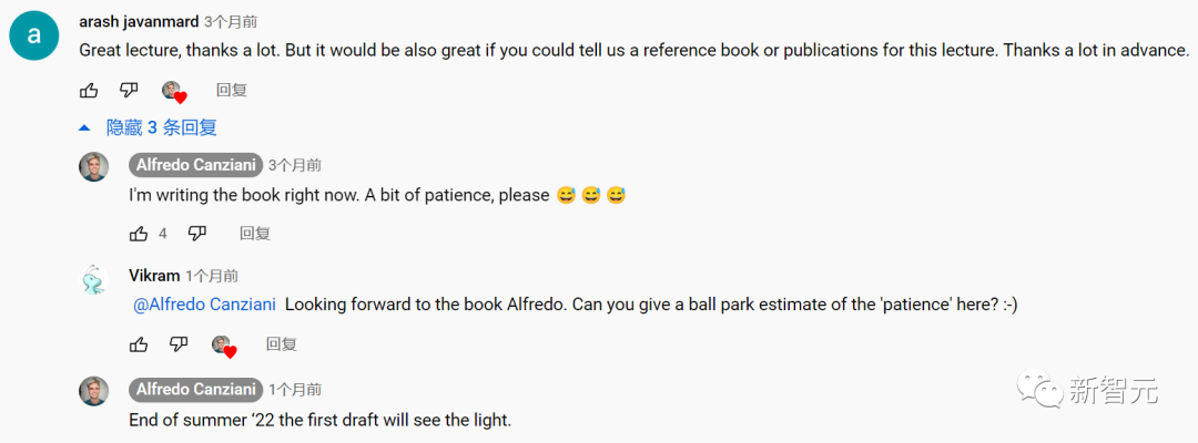 他甚至还对youtube视频下的评论做了回应。还有来自FAIR实验室(Facebook人工智能研究实验室)的客座讲师,介绍他们在CV和NLP方面的最新工作。