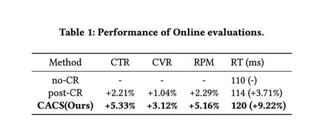 线上部分主要关注CACS架构和无创意优选模块以及传统创意选择架构的对比,关注效果和耗时两方面,结果如下: