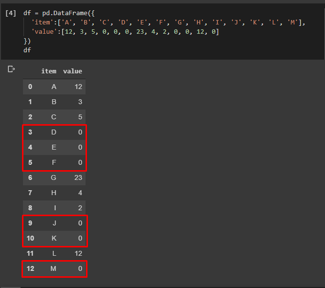 # detect consecutive values > 0. details please see link above. G = df[df[column] > 0].groupby((df[column] <= 0).cumsum()) events = list()