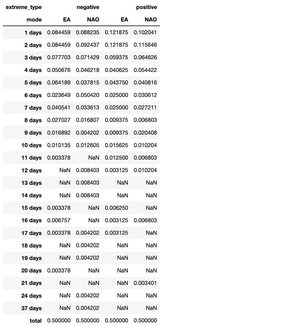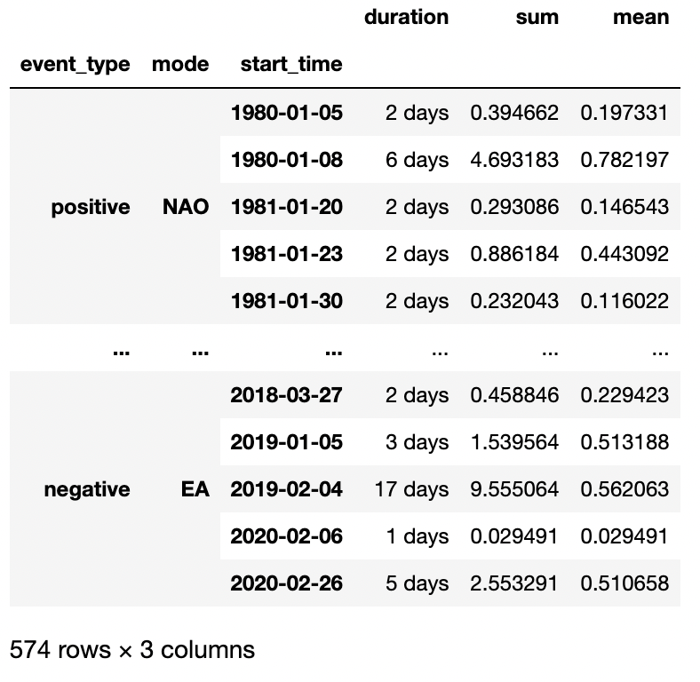 We show here the procedure to extract positive (negative) events of NAO and EA index gotten from ERA5.