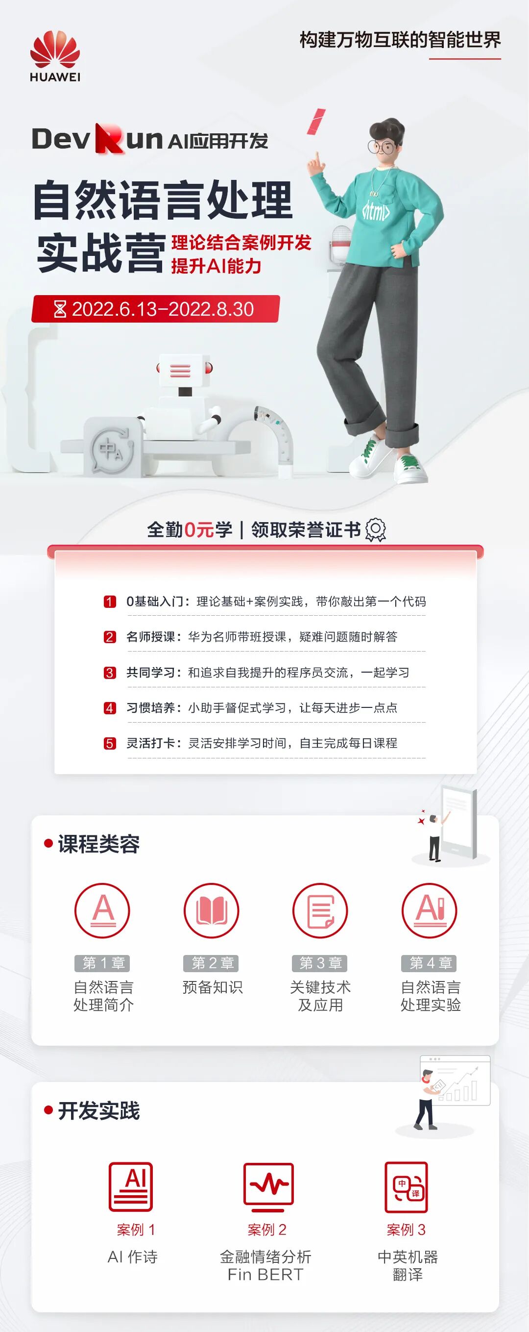 为此,华为云上线了Python+NLP实战营,帮助学习者掌握自然语言处理理论和应用,提升NLP相关编程能力,低门槛入门开发AI项目。重要的是,由华为专家授课教学,全程免费报名学习。