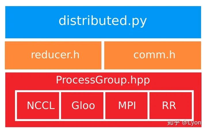 底层依赖 Pytorch在1.6版本中,可以通过torch.nn.parallel.DistributedDataParallel来实现数据并行的分布式训练,DistributedDateParallel,简称DDP。DDP的上层调用是通过dispatch.py实现的,即dispatch.py是DDP的python入口,它实现了 调用C ++库forward的nn.parallel.DistributedDataParallel模块的初始化步骤和功能;DDP的底层依赖c10d库的ProcessGroup进行通信,可以在ProcessGroup中找到3种开箱即用的实现,即 ProcessGroupGloo,ProcessGroupNCCL和ProcessGroupMPI。