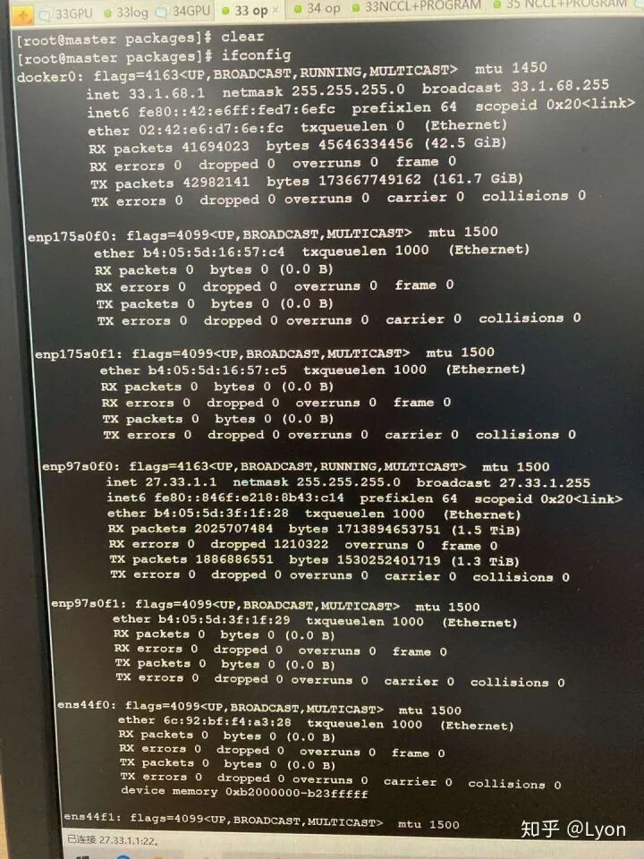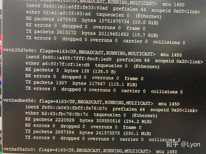 可以发现有很多enp开头的网卡,也有很多veth开头的虚拟网卡,而nccl日志输出中的:fe80::a480:7fff:fecf:1ed9是veth虚拟网卡。