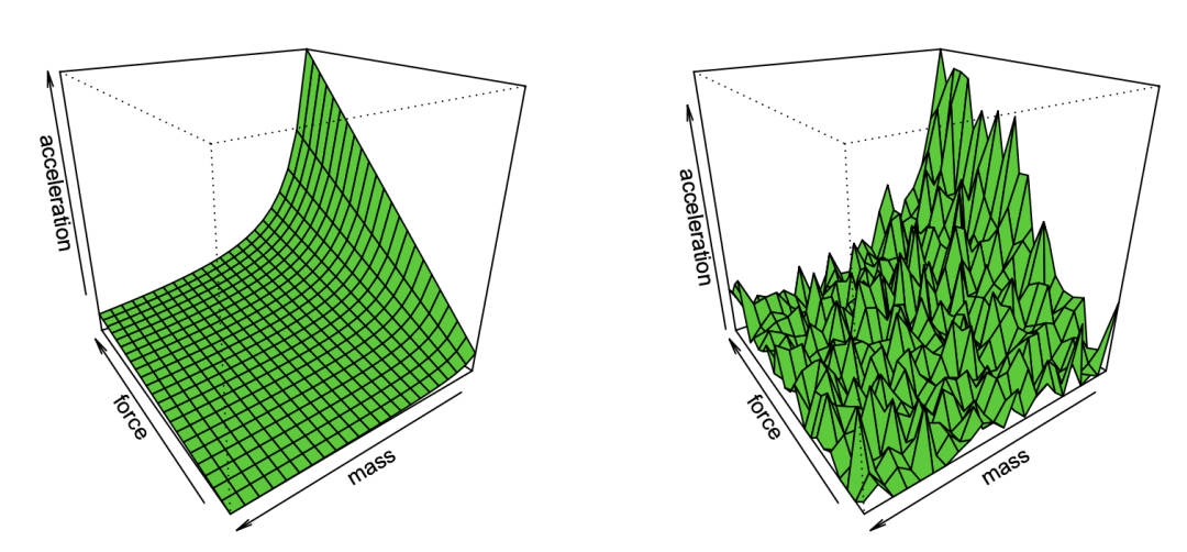 这种非常通用的范式包含了许多设置,包括最小二乘线性回归、最近邻、神经网络训练等等。在经典的统计设置中,我们期望观察到以下情况:偏差/方差权衡:将 F 作为优化的模型集。(当我们处于非凸设置和/或有一个正则器项,我们可以让 F作为这种模型的集合,考虑到算法选择和正则器的影响,这些模型可以由算法以不可忽略的概率实现。)F 的偏差是对正确标签的最佳近似,可以通过元素来实现。F 的类越大,偏差越小,当,偏差甚至可以是零。然而,当 F 类越大, 则需要越多样本来缩小其成员范围,从而算法输出模型中的方差就越大。总体泛化误差是偏差项和方差贡献的总和。因此,统计学习通常会显示偏差/方差权衡,并通过正确模型复杂性的“金发姑娘选择”来最小化整体误差。事实上,Geman 等人也是这么做的,通过说“偏差-方差困境导致的基本限制适用于包括神经网络在内的所有非参数推理模型”来证明他们对神经网络的悲观情绪是合理的。更多并非总是最好的。在统计学习中,获得更多的特征或数据并不一定能提高性能。例如,从包含许多不相关特征的数据中学习更具挑战性。类似地,从混合模型中学习,其中数据来自两个分布之一(例如和),比独立学习单个更难。收益递减。在许多情况下,将预测噪声降低到某个参数,其所需的数据点数量在某些参数 k 下以的形式拓展。在这种情况下,需要大约 k 个样本来“起飞”,而一旦这样做,则会面临收益递减的制度,即假设花耗 n 个点来达到(比如)90%的准确度,那么想要将准确度提高到95%,则大约需要另外 3n 个点。一般来说,随着资源增加(无论是数据、模型的复杂性,还是计算),我们希望捕捉到更多更细的区别,而不是解锁新的质量上的能力。对损失、数据的强烈依赖。在将模型拟合到高维数据时,一个很小的细节就有可能造成结果的很大不同。统计学家知道,诸如 L1 或 L2 正则化器之类的选择很重要,更不用说使用完全不同的数据集,不同数量的高维优化器将具有极大的差异性。数据点没有自然的“难度”(至少在某些情况下)。传统上认为,数据点是独立于某个分布进行采样的。尽管靠近决策边界的点可能更难分类,但考虑到高维度的测量集中现象,可预计大多数点的距离将存在相似的情况。因此,至少在经典数据分布中,并不期望点在其难度水平上有很大差异。然而,混合模型可以显示这种差异的不同难度级别,所以与上述其他问题不同,这种差异在统计设置中不会非常令人惊讶。