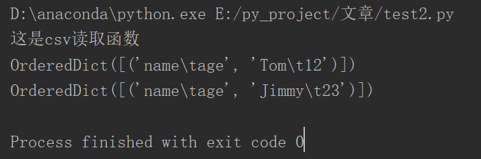 # -*- coding: utf-8 -*- import csv desc = '这是csv读取函数' print(desc) defread_csv(path): with open(path, newline='') as csvfile: reader = csv.DictReader(csvfile) for i in reader: print(i)