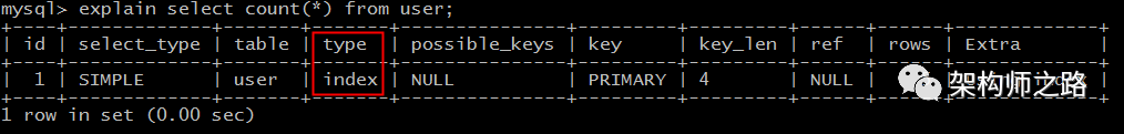 画外音:这些是最常见的,大家去explain自己工作中的SQL语句,95%都是上面这些类型。