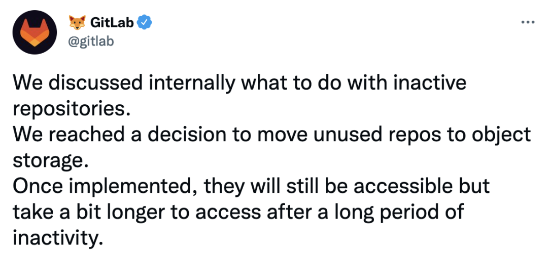如今 GitLab 又在社交平台发布公告表示,不会删除这类 “非活跃” 项目,而是会将这些项目放入速度比较缓慢的对象存储(object storage)中。