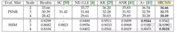 SR重构质量可通过图像质量评估的参考标准PSNR和SSIM进行评价,PSNR值和SSIM值越高,代表重建图像像素值与标准值越接近。其中PSNR定义如下(MSE代表图像评估中的均方误差):SSIM定义简化如下(其中代表 均值, 代表均方差):