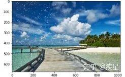 范围内的像素点作为加权参照。 和 分别代表像素点周围像 素权值的大小统计和像素点受周围 半径内像素影响的加权总和。对原始图像添加噪声,随机设定3000个像素点为白色(RGB值均为255),可以看出添加噪声后的图像相对原始图像增添了许多噪声白斑,如图2所示: