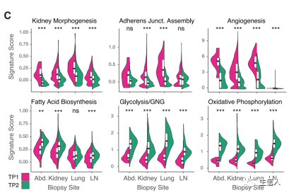 探究肿瘤亚型、性别、分期、年龄分组等临床特征分组之间特征得分是否显著差异。