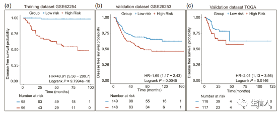 训练集、独立验证集,基于单因素、多因素Çox 和 log-rank检验验证预后标志物的效能。