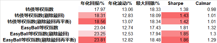 我们以下做了简单的验证,发现剔除赎回能有效减少因为接近赎回到期日,而造成后续的损失。但这一动作并不必然会影响我们策略的回报回撤比,同时对于部分低溢价导向策略其效果会相对有限。