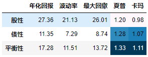 显然,与评级越低越好不同的是,股、债、平衡性存在一定取舍关系,综合来看平衡性品种在夏普比例等方便更占优——这也是因为它们的“期权性”普遍更胜一筹。