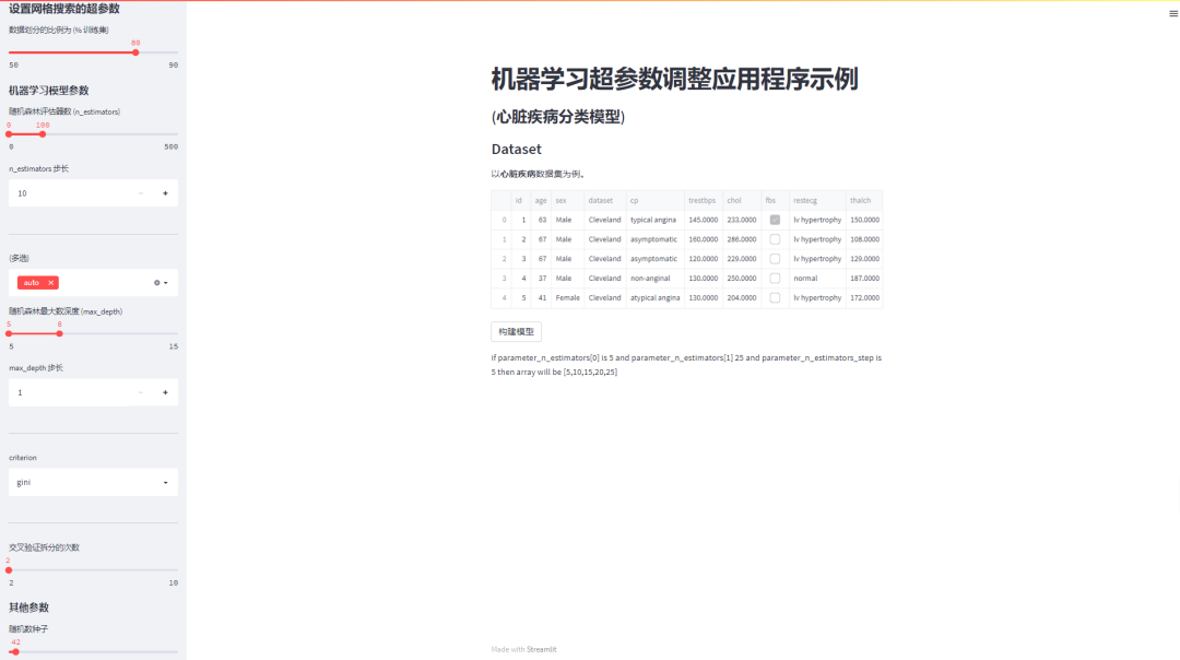 import streamlit as st st.set_page_config(page_title='机器学习超参数调整应用程序示例' , layout='wide' ) #设置页面布局,页面展开到全宽