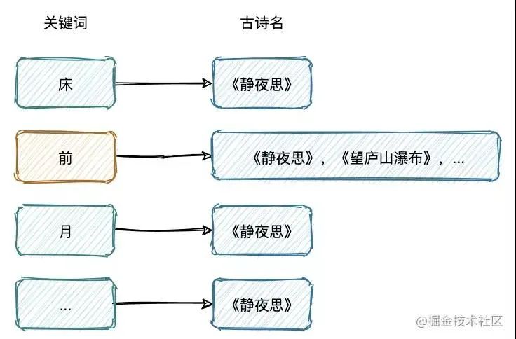 先设想一个关于搜索的场景,假设我们要搜索一首诗句内容中带“前”字的古诗。