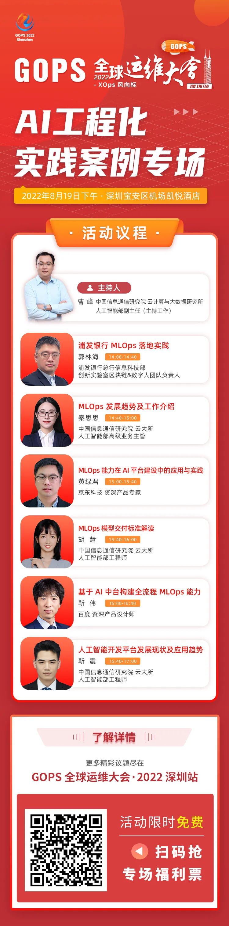 想了解 MLOps 的最新趋势?一个好消息!8月19日,来自浦发银行、中国信通院、京东、百度等专家,围绕 MLOps 的建设经验,为您讲述 MLOps 的最新发展趋势~