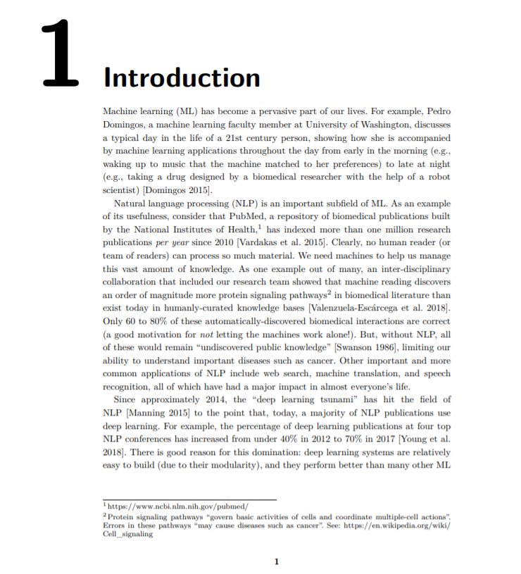 看到这些材料时,一个显而易见的问题可能会出现:“为什么还要一本深度学习和自然语言处理的书?”已有多篇优秀的论文发表,涵盖了深度学习及其在语言处理中的应用的理论和实践两个方面。然而,从我教授自然语言处理课程的经验来看,我认为,尽管这些书的质量很好,但它们中的大多数并不是针对最有可能的读者。这本书的目标读者是那些在机器学习和自然语言处理之外的领域有技能的人,他们的工作至少部分依赖于对大量数据(尤其是文本数据)的自动分析。这些专家可能包括社会科学家、政治科学家、生物医学科学家,甚至对机器学习了解有限的计算机科学家和计算语言学家。