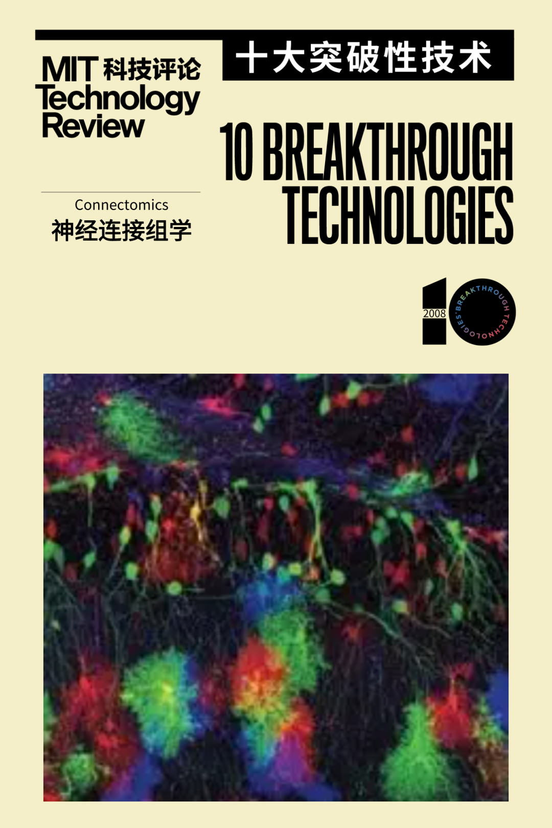 2008年入选“全球十大突破性技术”的“神经连接组学”则另辟蹊径,通过荧光蛋白等技术给大脑的神经网络进行染色,从而尝试为神经系统中收集、处理和存储信息的错综复杂的神经回路创建物理映射,方便直接观察。这一技术大大提高了科学家观察大脑的“图像分辨率”,使得他们可以在“大脑线路图”中一目了然地观测信息是如何在大脑的不同区域、不同神经元以及不同突触之间传输的,进而研究各种发生机制,以及精神类疾病、神经系统疾病究竟是哪些线路出错导致的缺陷。