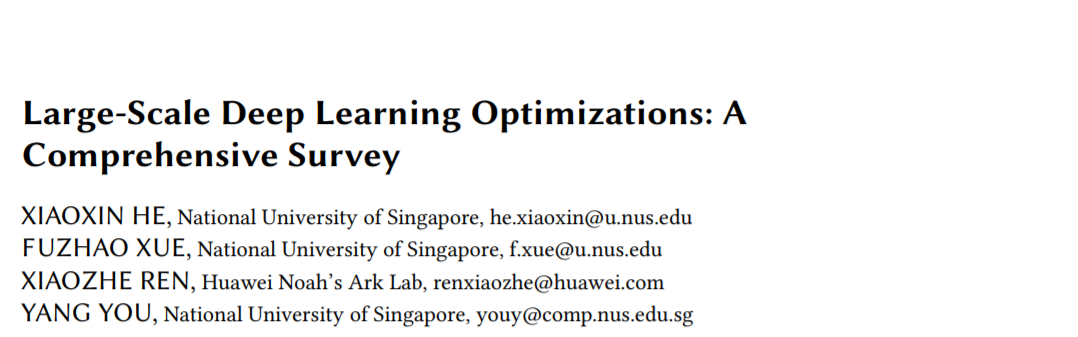 目前,深度学习(DL)已经在广泛的人工智能应用领域取得了可喜的结果,包括计算机视觉(如图像分类[42,47,66],目标检测和分割[35,41,65,85]),自然语言处理(如语言建模[28,117]和机器翻译[108,114]),信息检索(例如,推荐系统[43])和许多其他。规模是DL上升的主要推动力[28,42,55,56,94,104]。更大的数据集和神经网络在所有通常需要更多计算和更长的训练时间的任务中总是产生更好的性能。因此,近年来,学术界和工业界对在具有更高计算能力和内存限制的TPU和GPU等设备的大集群上扩展DL和分布式训练的兴趣激增。数据并行已经成为分布式训练的主要实践。它将一个大的批处理分布到多个设备,其中每个设备持有一个相同的模型副本,计算局部批处理的梯度,最后在每次迭代收集梯度来同步参数更新。通过最新的优化技术,它现在能够在成千上万的GPU设备上训练非常大的批量。然而,这种规模的训练需要克服算法和系统相关的挑战。其中一个主要的挑战是模型精度在超过某一点(例如32k)时的大批量下降。单纯地增加批处理大小通常会导致泛化性能下降,并降低计算效益。此外,我们不能总是通过使用更多的处理器来提高训练速度,因为通信成本是不可忽略的开销。多处理器协同训练一个任务可以减少整体训练时间,但相应的处理器间通信成本很高,限制了模型的可扩展性。更糟糕的是,拥有数百亿到数万亿参数的模型显然无法装入单个设备的内存中,简单地增加更多设备也无助于扩大训练规模。这种限制阻止DL研究人员探索更高级的模型体系结构。现有的工作研究和开发了克服这些问题的优化技术,以加速大规模深度神经网络(DNN)的训练。我们将这些工作分为两类,一种努力在大规模设置下保持/提高模型的准确性,另一种强调模型的效率,设计不太需要通信和内存的算法。重要的是,它们不是相互排斥的,而是可以协同使用,以进一步加快训练。