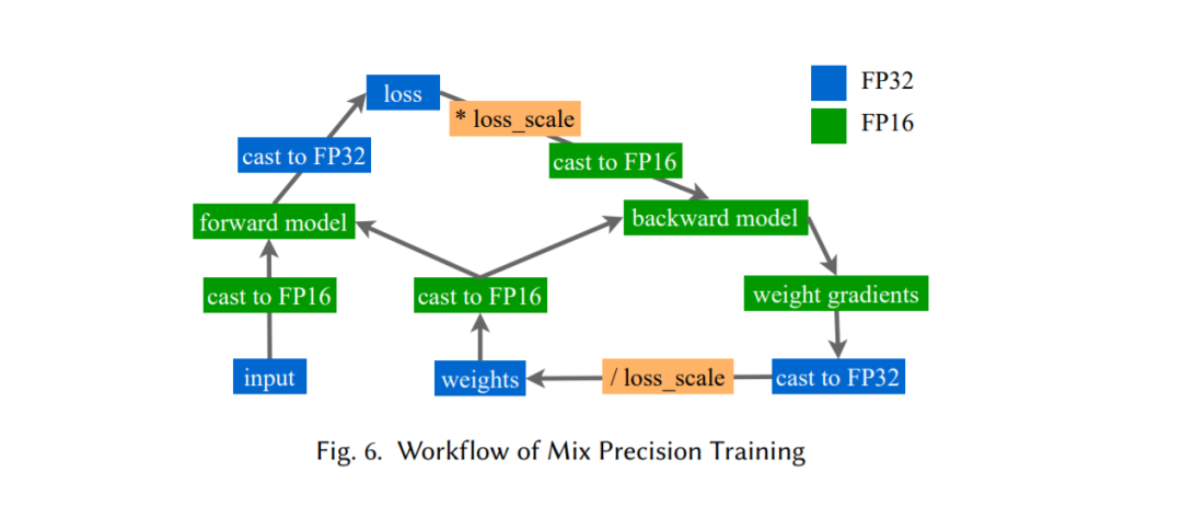 更大的模型通常需要更多的计算和内存资源来训练。训练这些模型所需的内存数量可能比单个GPU上可用的内存数量大几个数量级。在本节中,我们将看到一些流行的技术如何成功地在不影响模型性能的情况下降低训练神经网络的内存需求。第8.1节介绍了混合精度训练[72]如何使用更少的位来保留训练期间的权值和梯度,从而降低内存负担。第8.2节介绍了两种有效内存的自适应优化器,Adafactor[93]和SM3[10]。与上述方法正交,ZeRO[81]不改变模型优化方法,也不影响模型收敛,而是通过消除数据并行中的冗余来降低内存成本(章节8.3)。