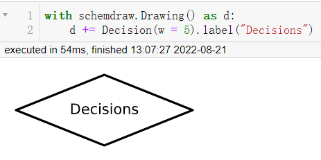 模块当中呢,有六个元素用来代表流程图的主要节点的,椭圆形代表的是决策的开始和结束,代码如下import schemdraw