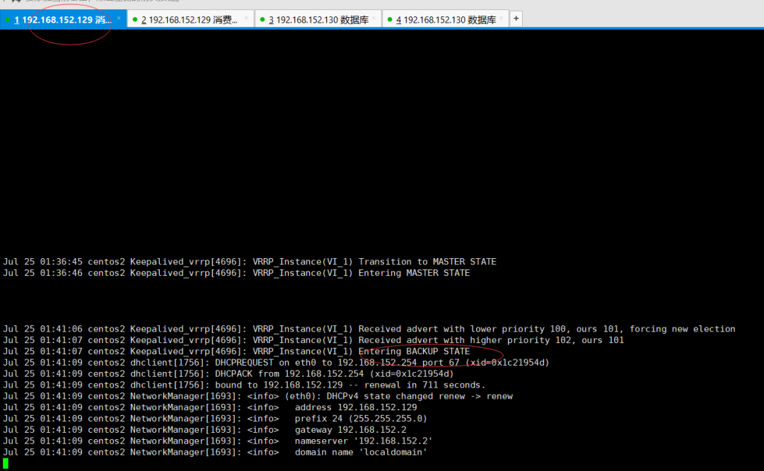 virtual_ipaddress { 192.168.152.200 # 定义虚拟ip(VIP),可多设,每行一个 }到这一步环境准备已完成,相关的配置也修改完成,下面我们来查看效果