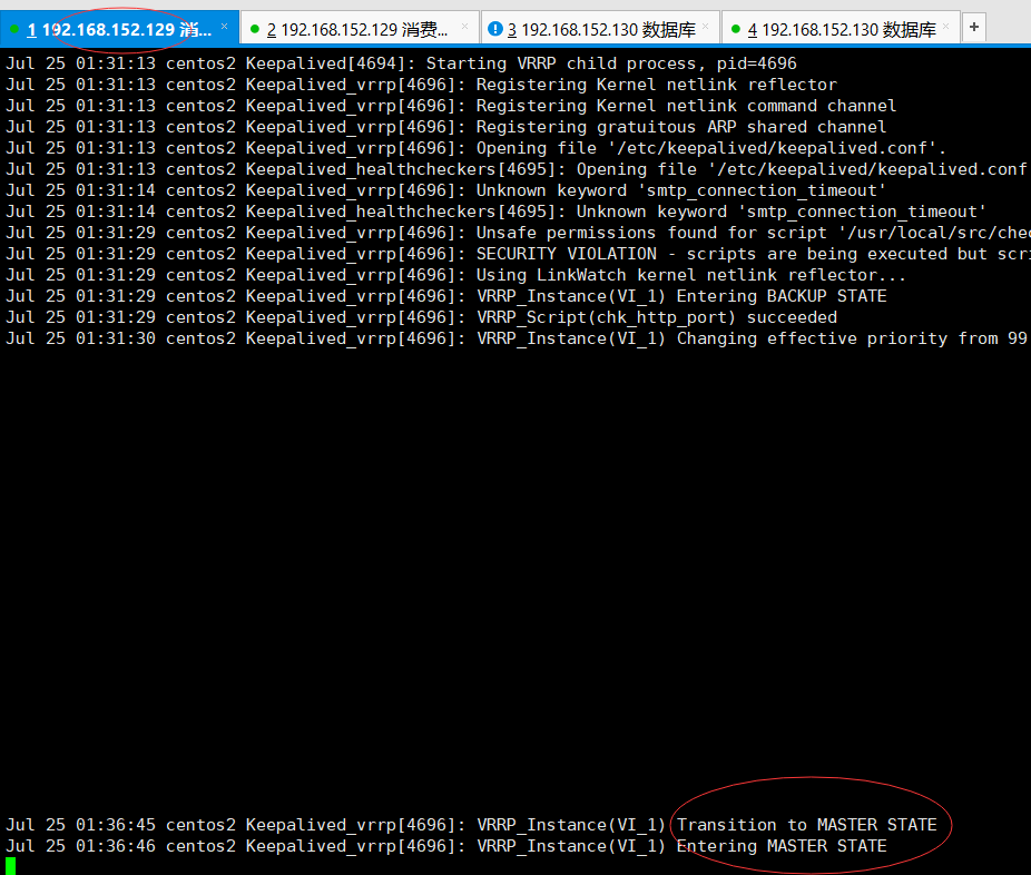 *注:192.168.152.129(keepalived从节点) 与 192.168.152.130(keepalived主节点)先安装好nginx + keepalived*