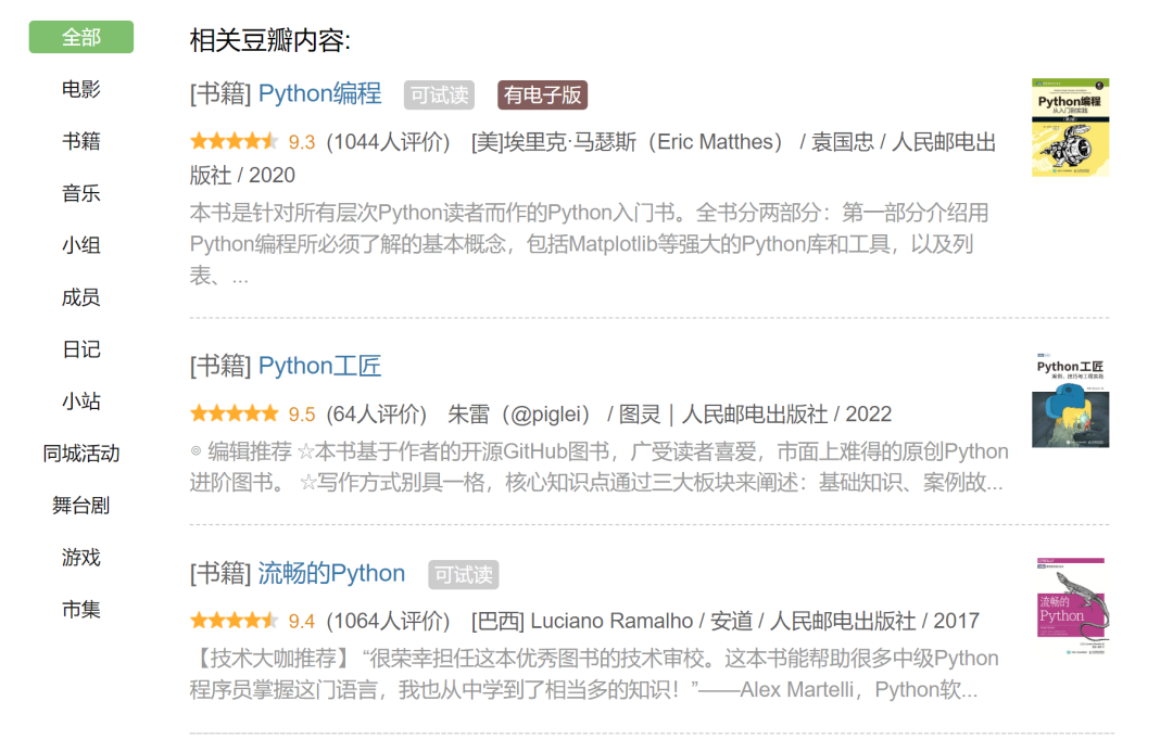 即日起,我们寻找认真读书并热爱输出的你,记得去豆瓣读书分享你的阅读体验,留下你的阅读痕迹是一件美好的事情。在豆瓣读书平台,为你看过的本文中的 Python 图书或者图灵出品的其他 Python 图书撰写书评(不少于 150 字,充分尊重您的打星权)