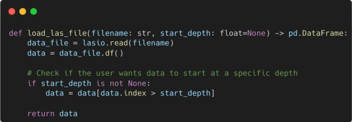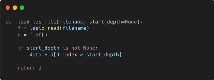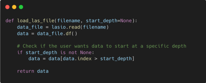如果我们为这些变量分配适当的名称,就能够知道其中一个是由 lasio.read() 调用读取的 data_file,并且很可能是原始数据,data 变量告诉我们这是我们正在使用的实际数据。