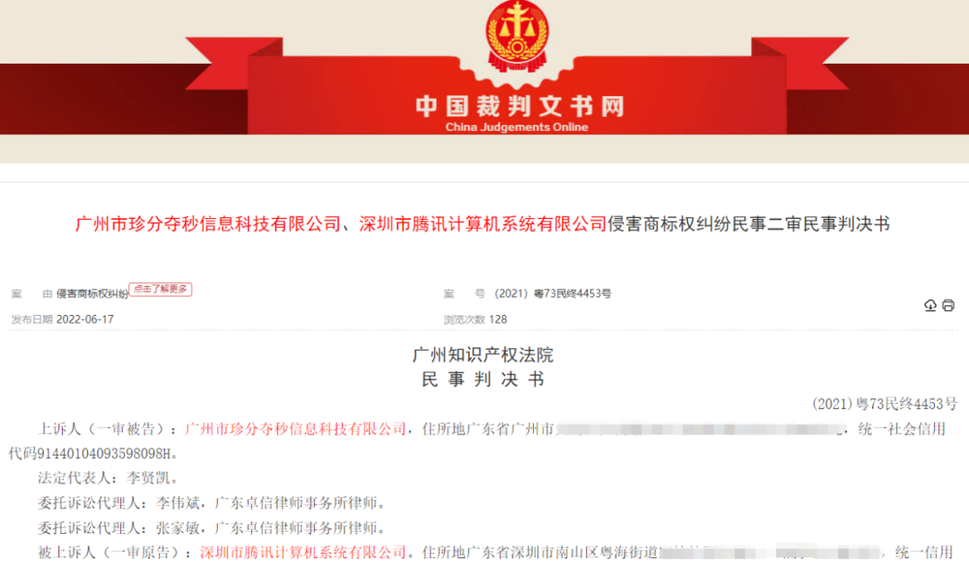 近日,深圳市腾讯计算机系统有限公司与广州市珍分夺秒信息科技有限公司侵害商标权纠纷两则文书公开。法院判决被告停止私自收集微信公众号用户数据等不正当竞争行为,并赔偿腾讯公司经济损失 300 万元。