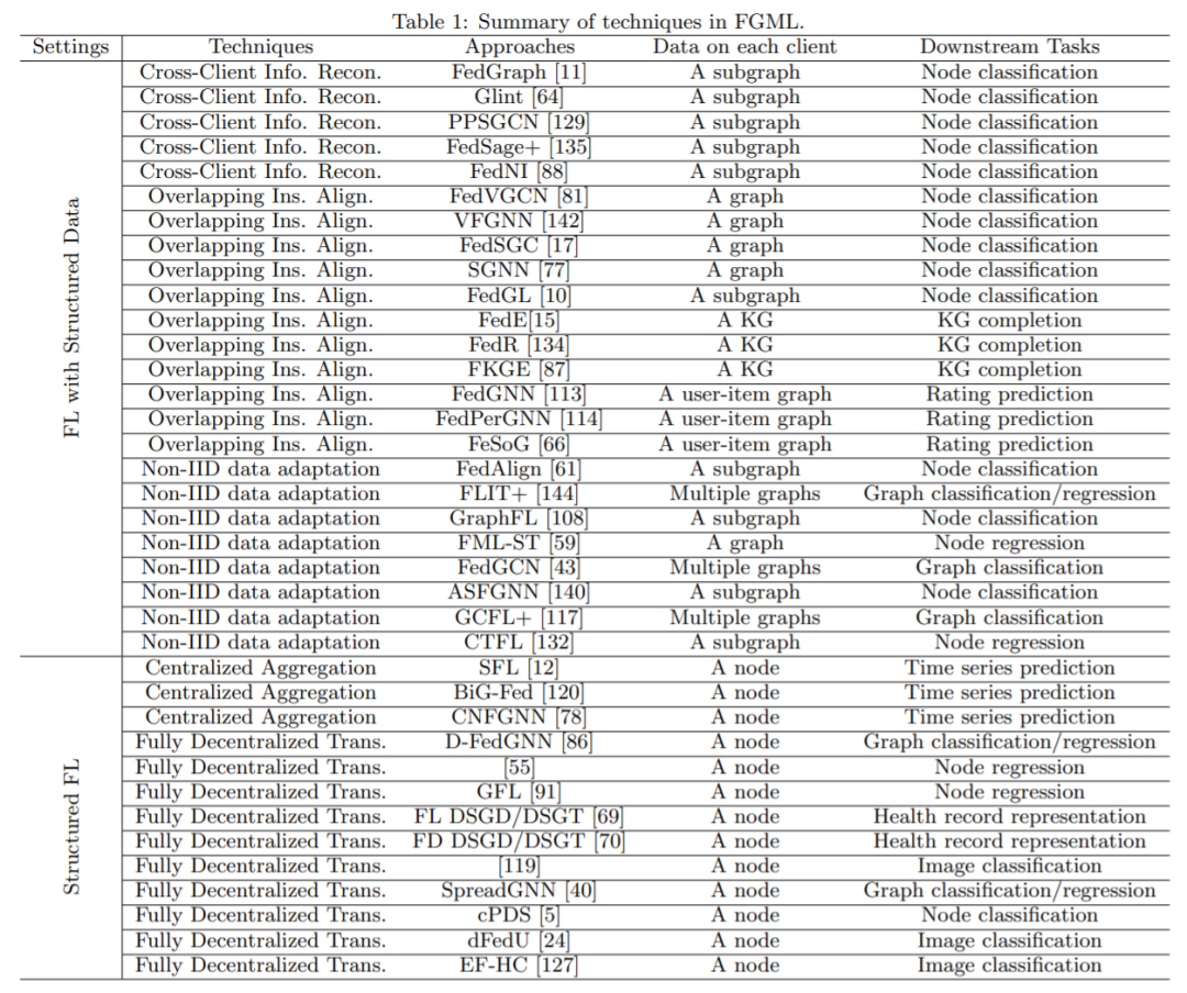 FGML 技术分类:文章给出了基于不同问题的 FGML 分类法,并总结了每个设置中的关键挑战。