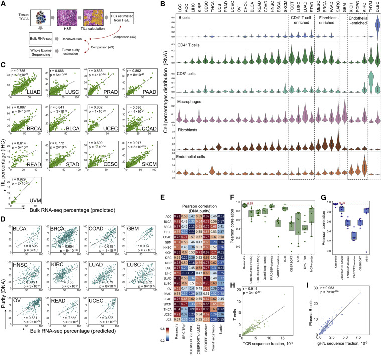 图4. 健康组织和肿瘤组织RNA-seq的大规模TME反卷积。