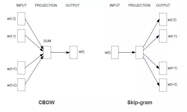 (a) Word2vec 是一组生成数字特征矢量来表示单词的方法。他们使用浅的双层神经网络来重建单词的语言上下文。Word2vec 的输入以一个大型文本体为输入,并生成一个矢量表示形式,通常有几百个维度,用于语料库中的每个唯一单词。当单词共享公共上下文时,它们的单词向量彼此相似。图 2(来自 [7])描述了 Word2vec 的两个体系结构。CBOW 体系结构训练一个模型,根据单词袋描述的上下文预测当前单词,而 Skip-gram 体系结构训练一个模型来预测给定当前单词的周围单词。Word2vec 已概括为图像数据、图形数据等。