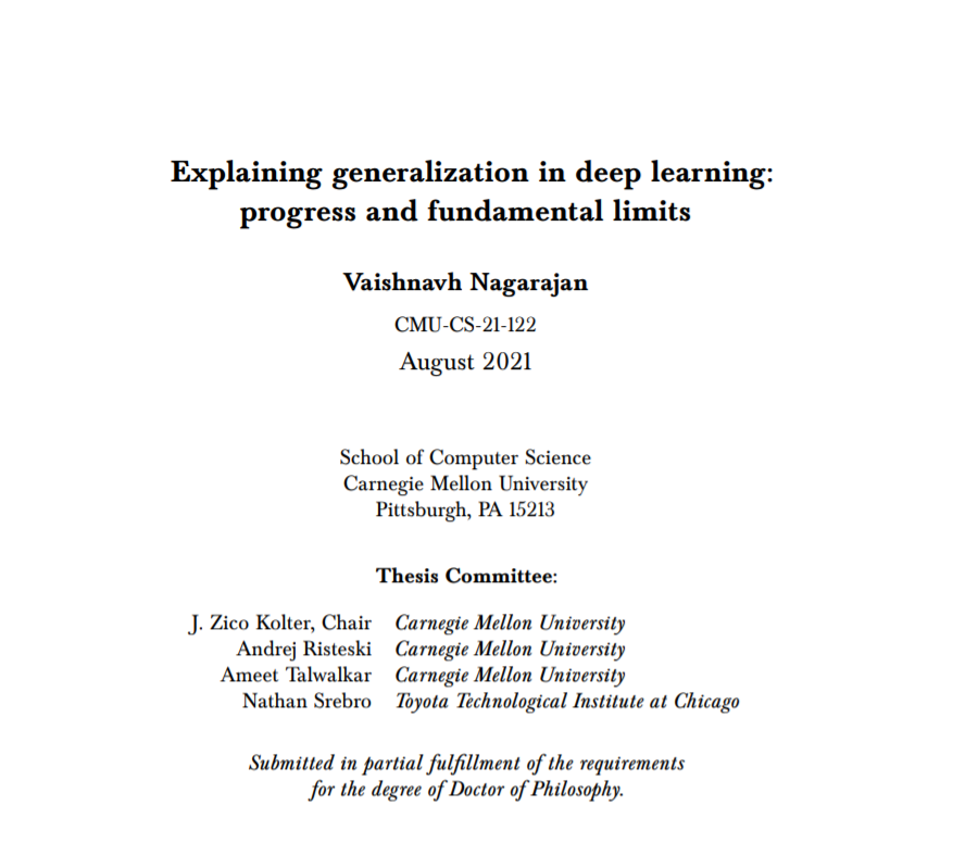 【导读】深度学习具有良好的泛化性。如何对此进行理论性解释,一直是研究热点。来自CMU的博士生Vaishnavh Nagarajan对深度学习泛化性进行了系统性研究,并整理成博士论文,值得关注!