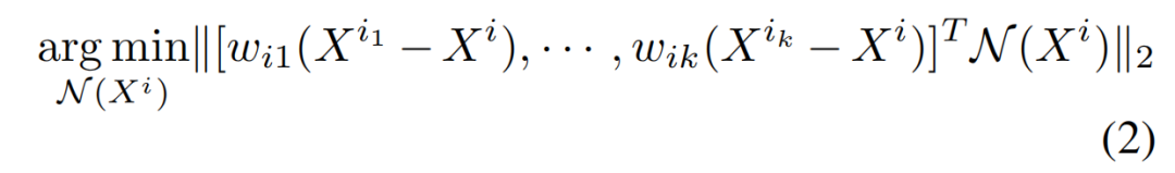 法向量估计。如图2所示,给定一个3D点Xi及网格上其k个邻居Xij,j=1,2,……,k。则法向量N(Xi)可以用下式表示: