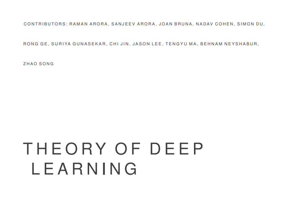 深度学习已经成为机器学习的核心范式。然而,对数学的理解仍然缺乏。需要多少样本?训练多快能成功?为什么卷积神经网络适合图像数据?本课程将涵盖回答这些问题的最新进展。本专著讨论了新兴的深度学习理论。它以普林斯顿大学2019年秋季的研究生研讨会为基础,同时与高等研究所的优化、统计和机器学习特别年相结合本章建立了基于梯度的优化算法的基本分析框架,并讨论了如何将其应用于深度学习。