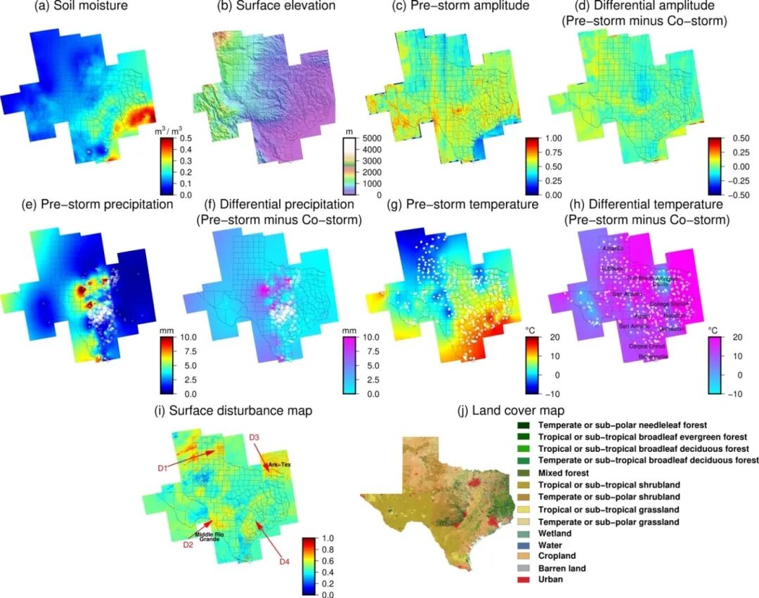 该研究为定量分析极端天气事件提供了新思路,论证了SAR数据和InSAR产品在估算大范围地面扰动的可行性,集成土壤湿度、地表高程、SAR幅度影像、降水、温度、地面扰动和地面覆盖等多种因素参与机器学习,展示了大数据和人工智能在自然灾害研究的应用潜力。