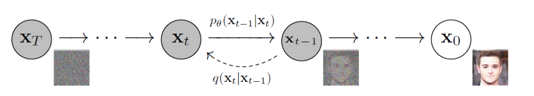 扩散模型通过逐步去除正态分布变量中的噪声来学习数据分布。换句话说,DMs采用长度为T的反向马尔可夫链。这也意味着DMs可以建模为时间步长T =1,…,T的一系列T去噪自编码器。这由下式中的εθ表示。请注意,损失函数依赖于隐向量而不是像素空间。