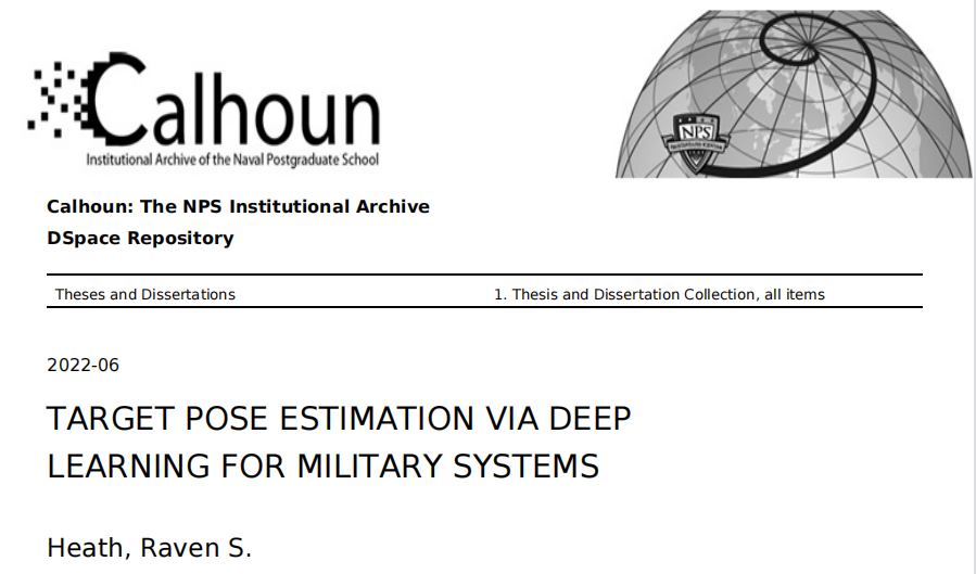 便捷下载,请关注专知人工智能公众号(点击上方蓝色专知关注)后台回复“TPE” 就可以获取《《通过深度学习进行军事系统的目标姿态估计》2022美国海军研究生院88页论文》专知下载链接欢迎微信扫一扫加专知助手,咨询使用专知,获取最新AI专业干货知识教程资料!
