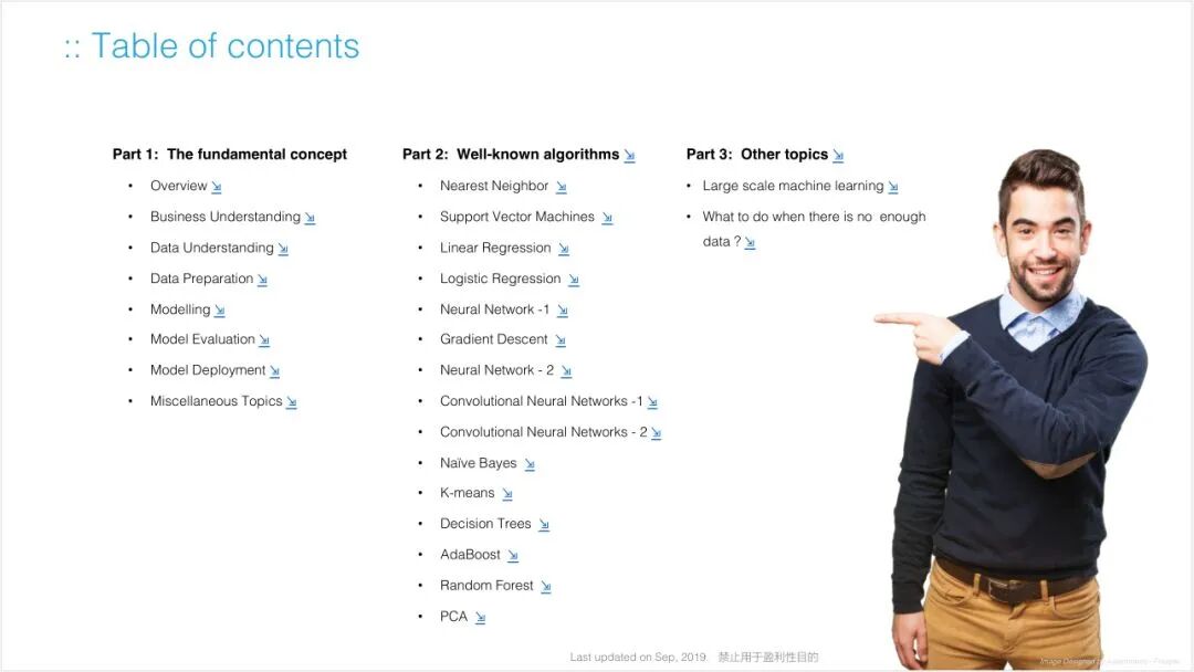 内容概要:主要分为基本概念、常用算法和其他三部分。正是对机器学习的过程中的痛苦有切身体会,作者希望能做一份教程,以浅显易懂的方式去讲解它,降低大家的学习门槛。作者为此花费了数月时间,经常做到深夜,把自己的学习笔记整理成了这份教程。