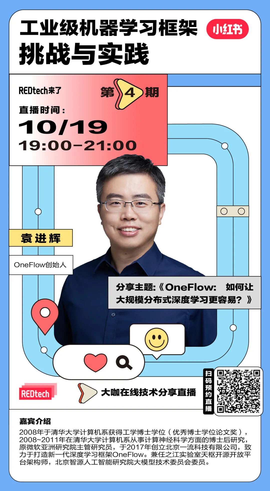 就在10月19日19:00,小红书技术REDtech邀请到了国内的深度学习框架初创公司One Flow的创始人袁进辉,与小红书智能分发部负责人瑞格带来新一期【REDtech 来了】技术直播。他们将围绕机器学习框架在工业界实际应用的挑战与前景展开精彩分享。