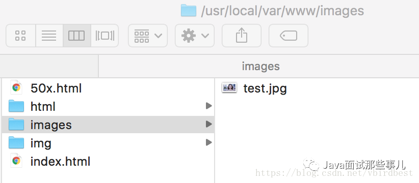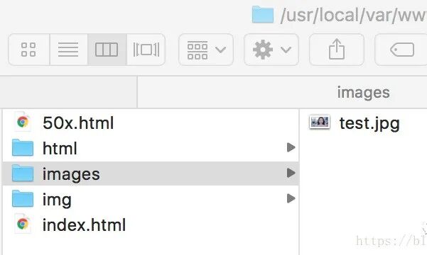 1、在/usr/local/var/www 下分别创建images和img目录,分别在每个目录下放一张test.jpg