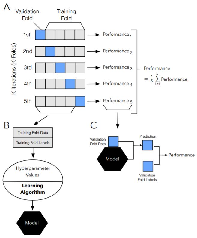 我们可以把超参数调整(又称超参数优化)和模型选择的过程看作元优化任务。当学习算法在训练集上优化目标函数时(懒惰学习器是例外),超参数优化是基于它的另一项任务。这里,我们通常想优化性能指标,如分类准确度或接受者操作特征曲线(ROC 曲线)下面积。超参数调整阶段之后,基于测试集性能选择模型似乎是一种合理的方法。