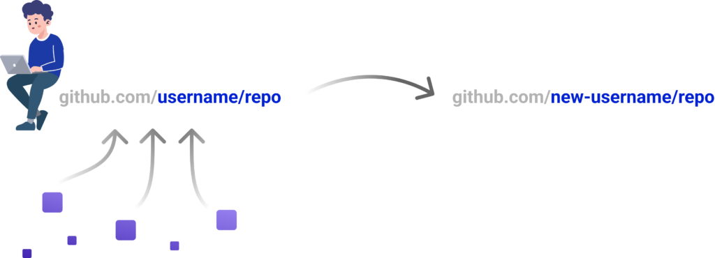 但是GitHub用户是可以修改其账户名的。GitHub支持修改用户重命名,并会展示如下信息,包括现有库的URL的流量会重定向到新的库URL。