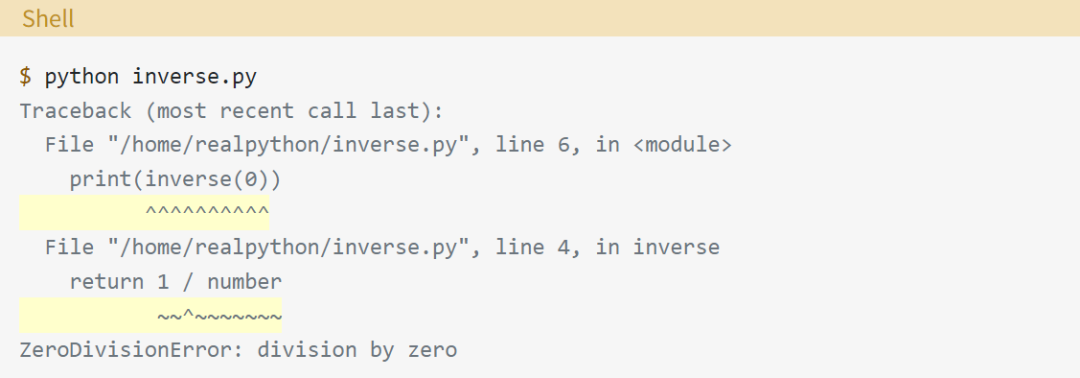 举例来说,你可以使用 inverse() 来计算一个数的倒数。因为 0 没有倒数,所以在运行下列代码时会抛出一个错误。