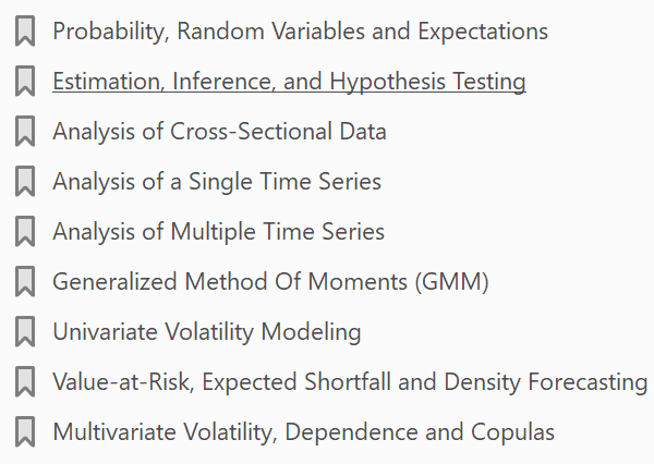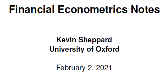 致力于金融计量经济学研究的牛津大学Kevin Sheppard教授,制作了大量的教学资源。其中,包括一套完整的金融计量经济学Notes,以及Python和MATLAB的使用指南。